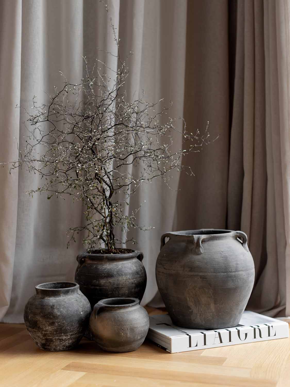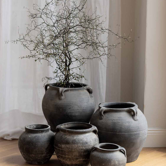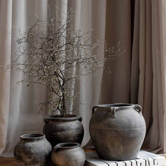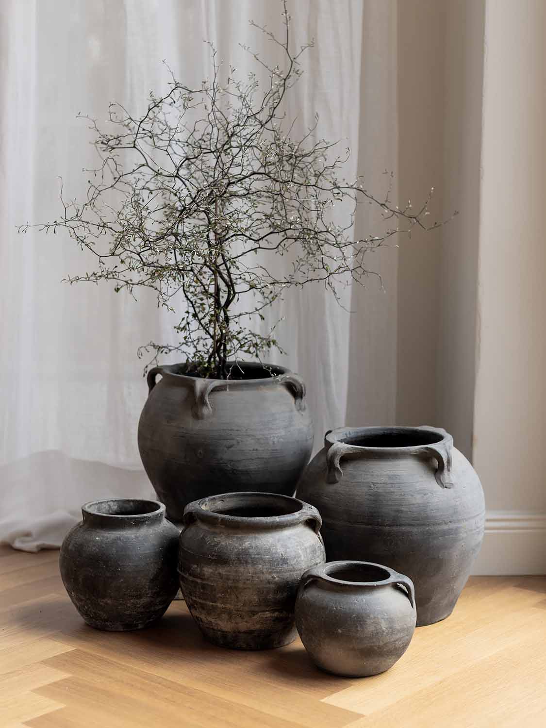Medium-sized antique clay vessel from the early 20th century, matte gray with a beautiful, age-related patina.