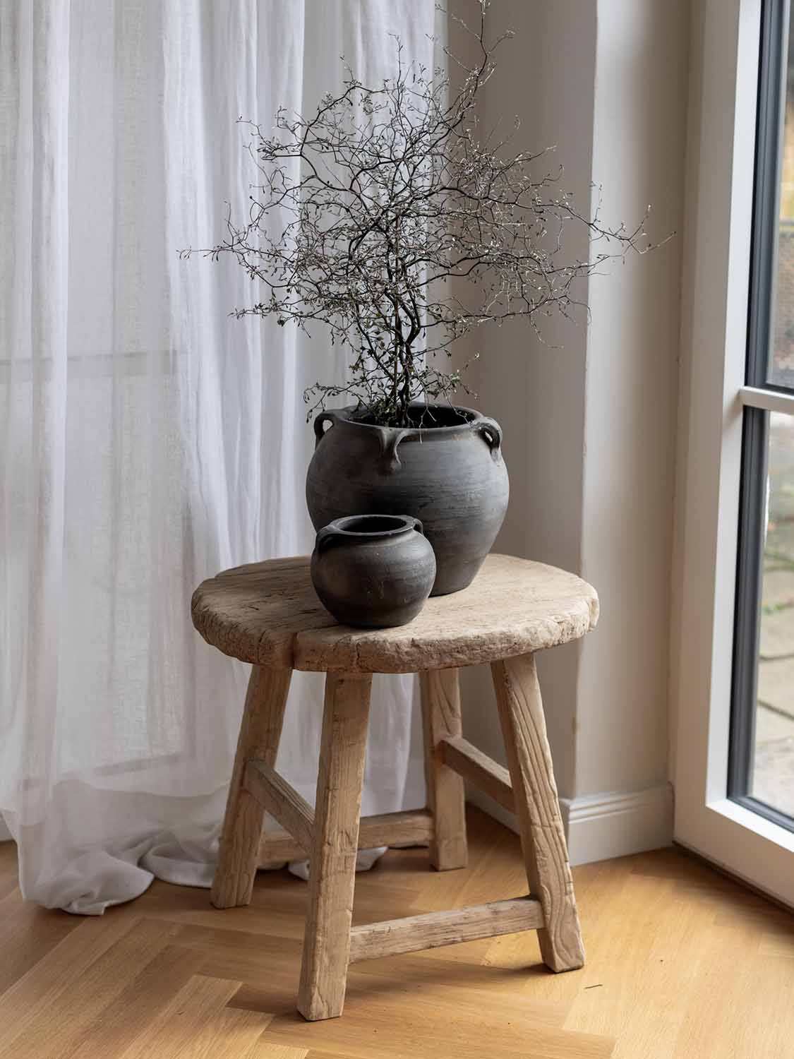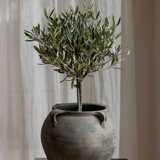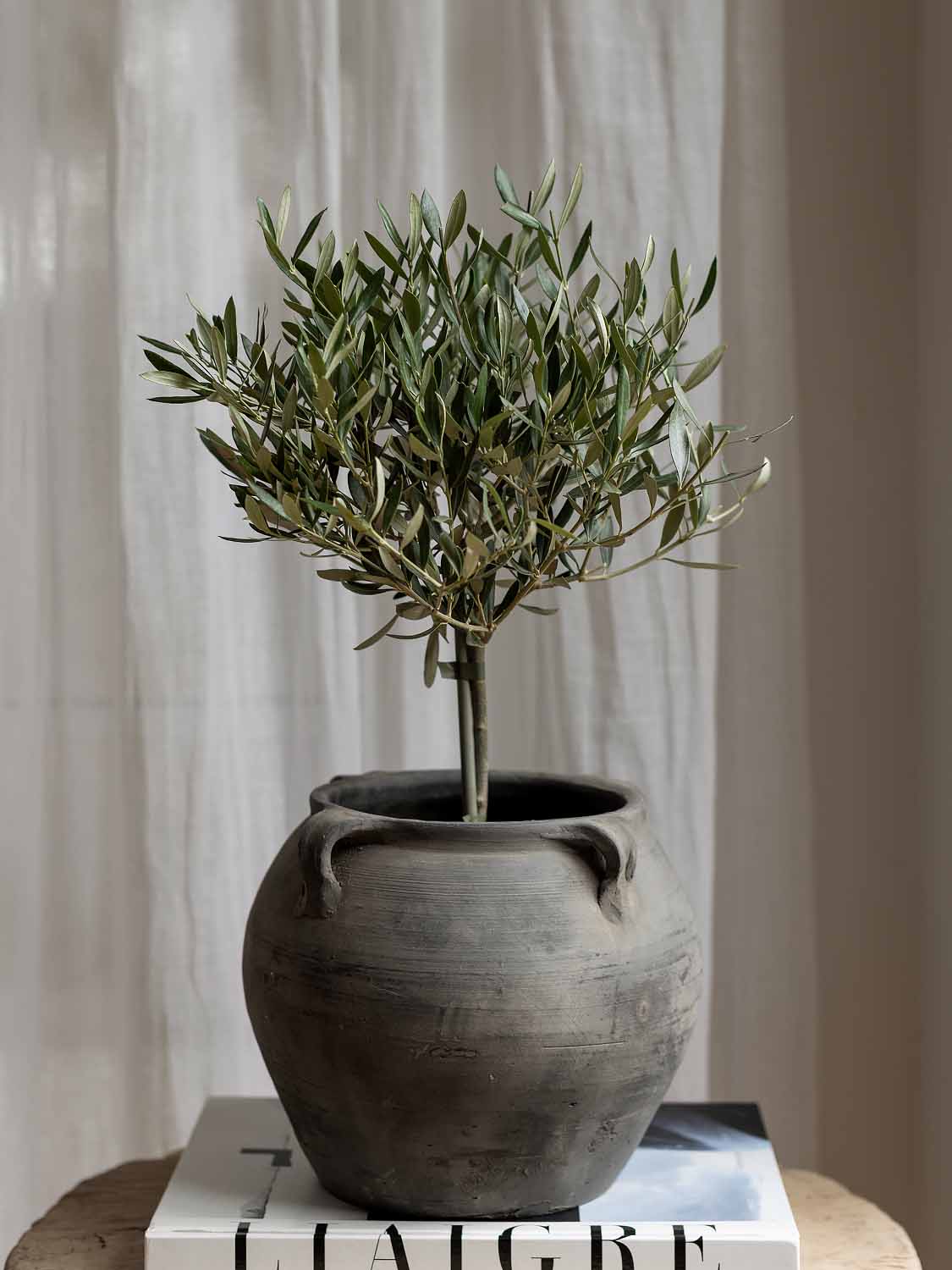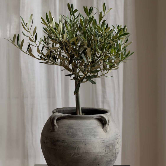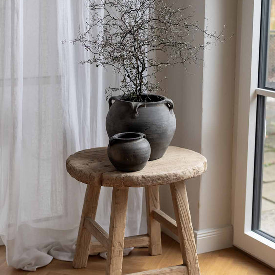 Medium-sized antique clay vessel from the early 20th century, matte gray with a beautiful, age-related patina.