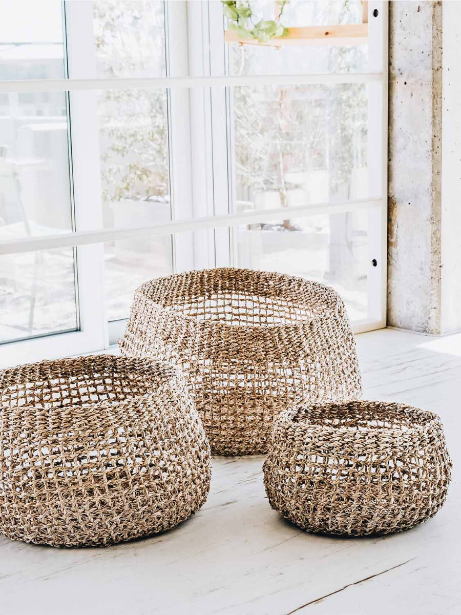 These handwoven baskets made from seagrass add a beautiful and functional accent to any room. The stylish baskets offer many design possibilities and can be used both for storing items and as plant pots.