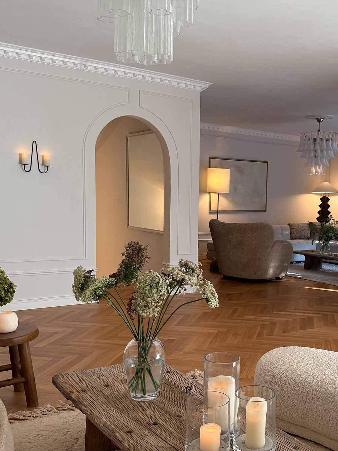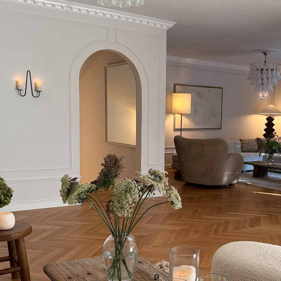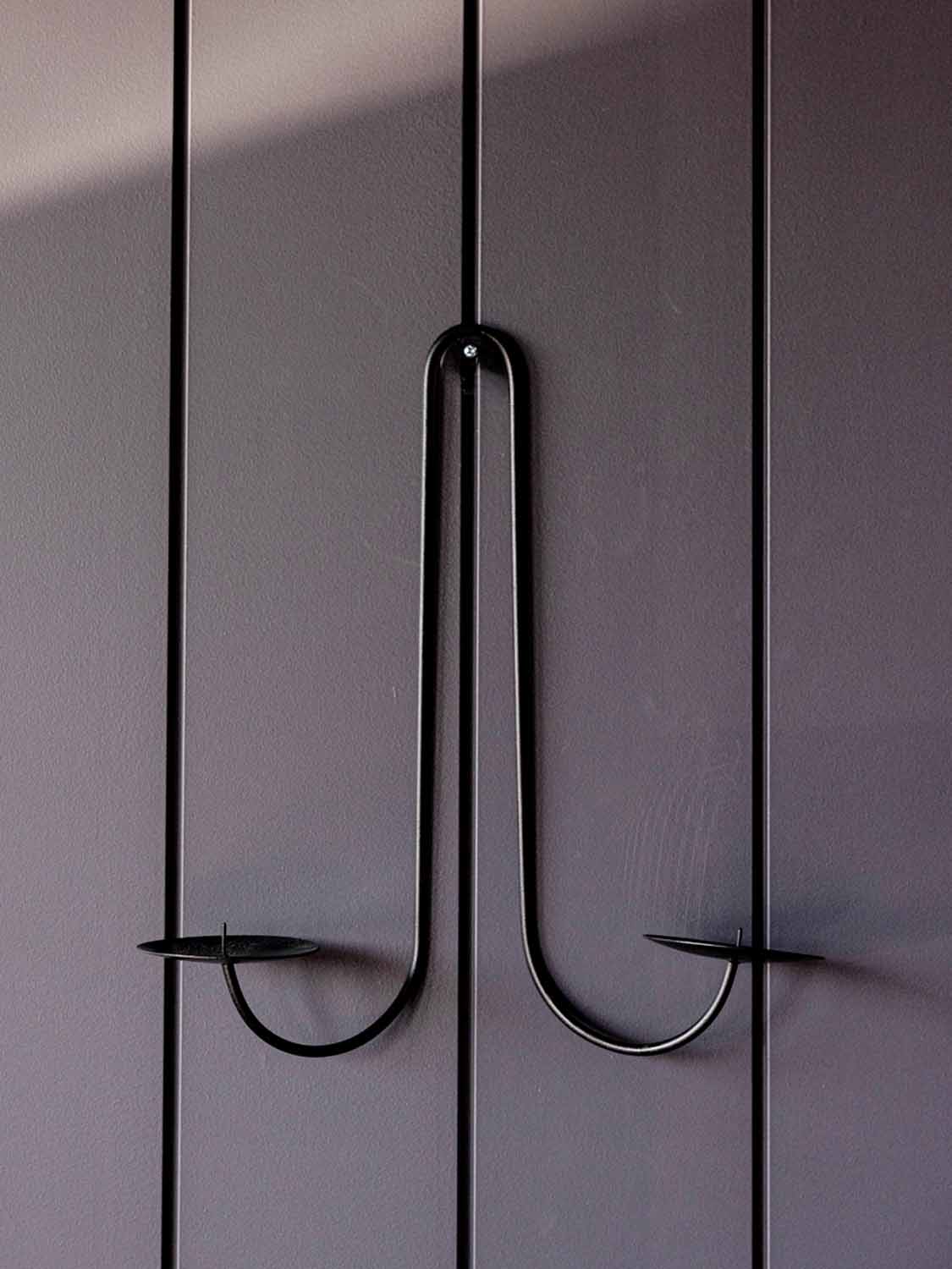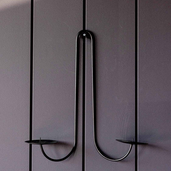 Fabricado en hierro macizo, el aplique aporta peso y estabilidad. Sus dos brazos ofrecen espacio para velas cónicas o de pilar y llenan al instante la estancia de una luz cálida y envolvente, ideal para ocasiones especiales o como acento decorativo en el día a día.