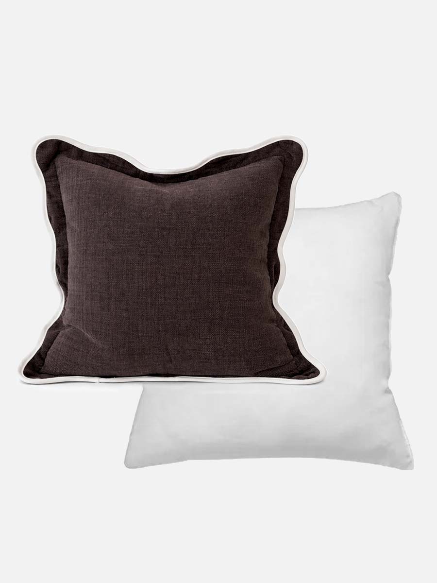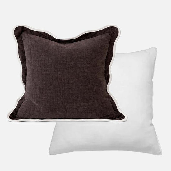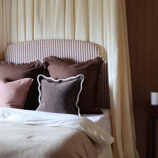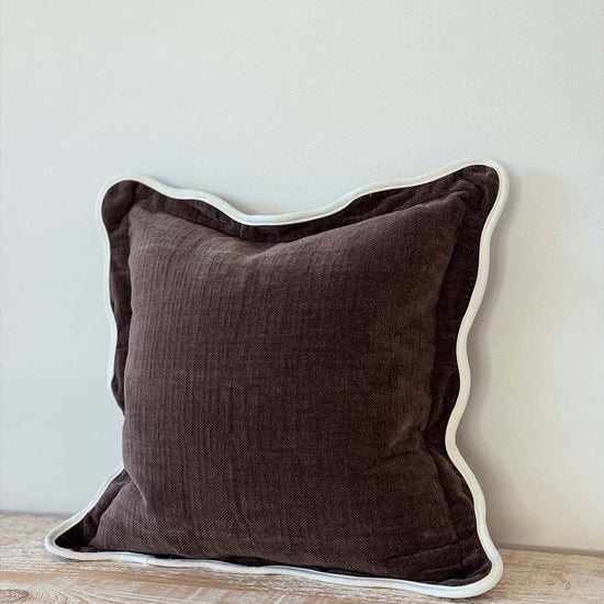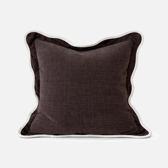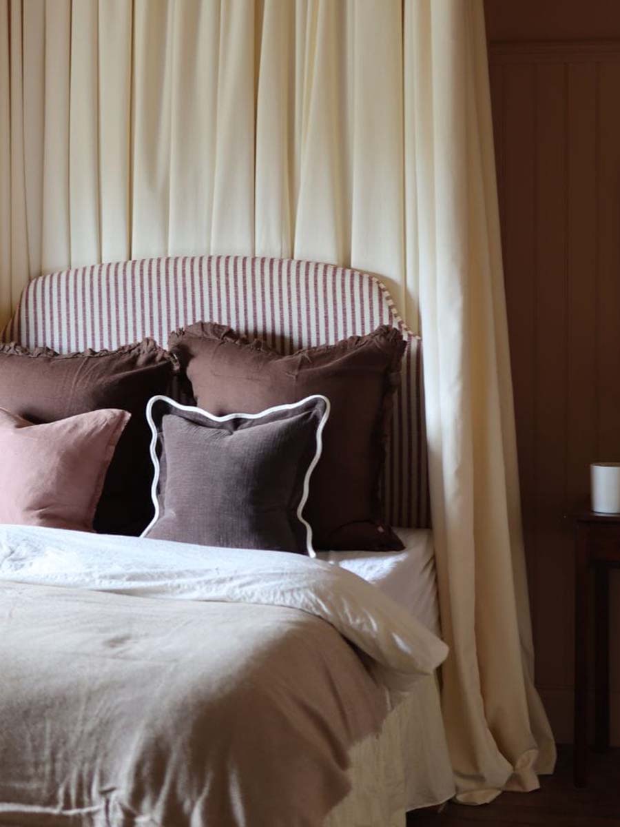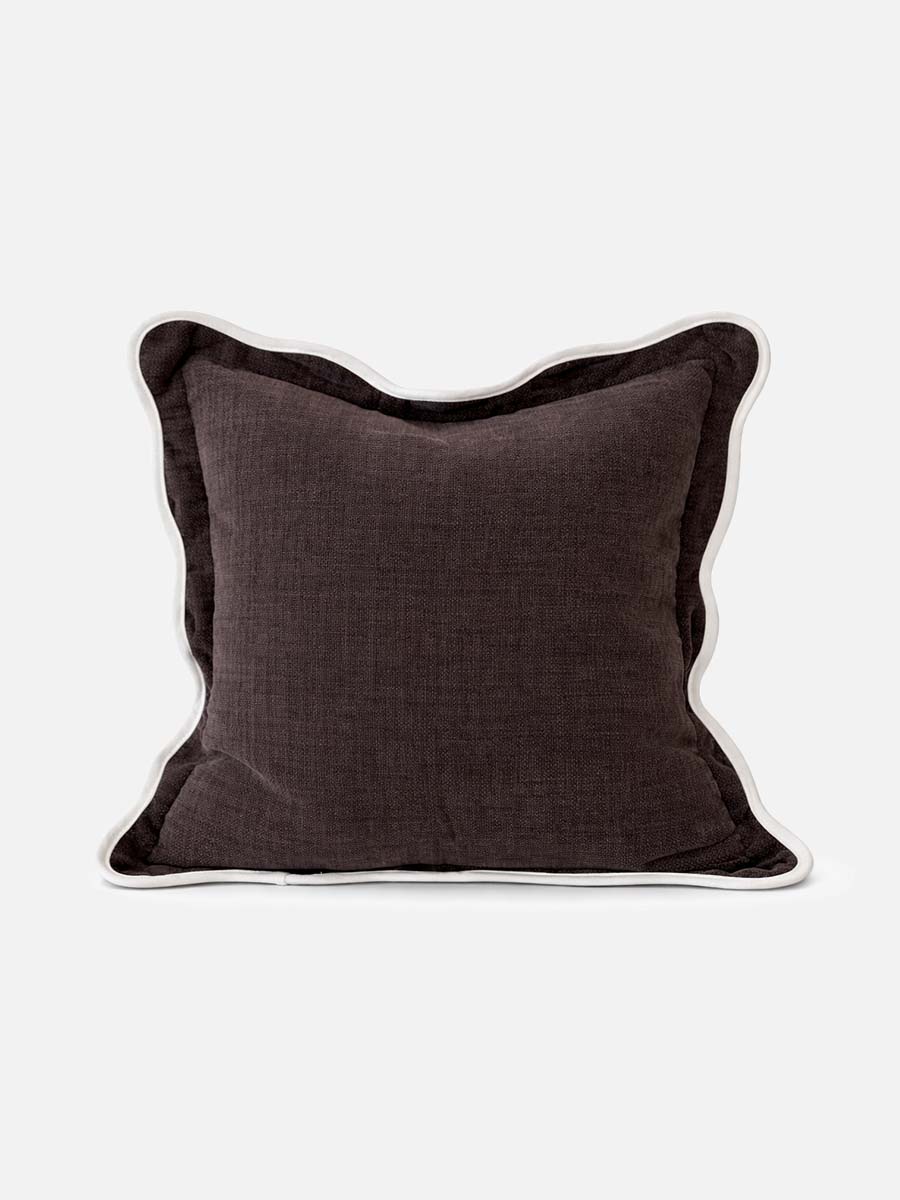 Le coussin Louise dans une teinte brun foncé profonde apporte chaleur et profondeur à l’espace. Le bord festonné souligne son caractère calme et raffiné, créant un accent élégant sans être envahissant.