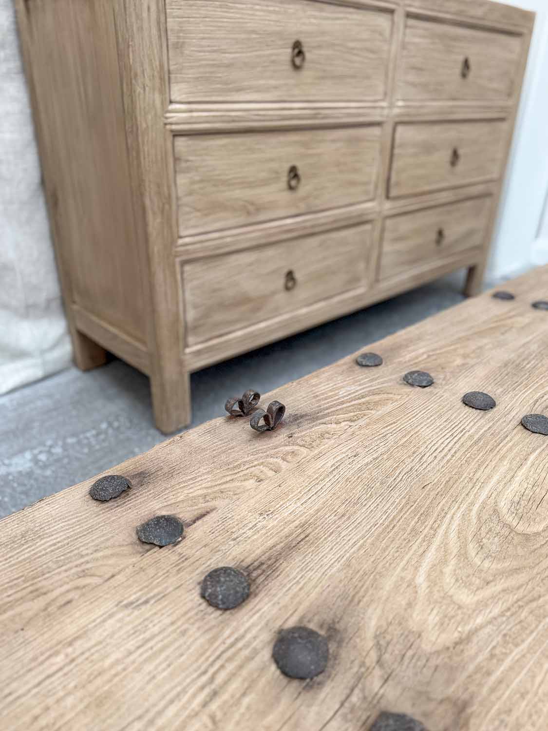 - Material: altes Ulmenholz