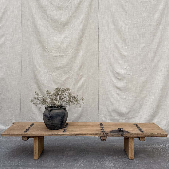Dieser rustikale Couchtisch aus altem Ulmenholz bringt einzigartigen Charakter und zeitlose Eleganz in Ihren Wohnraum. Gefertigt aus mehr als 100 Jahre altem Ulmenholz, zeichnet sich dieser Tisch durch natürliche Unvollkommenheiten wie Dellen, sichtbare Äste und Maserungen aus, die ihm einen besonderen Charme verleihen. Jeder Tisch ist ein Unikat, das von Kunsthandwerkern mit viel Liebe zum Detail gefertigt wird und garantiert, dass kein Stück dem anderen gleicht. Die rechteckige Form und das vielseitige Design machen ihn zu einer luxuriösen Ergänzung, die sowohl in moderne als auch in rustikale Einrichtungsstile passt.